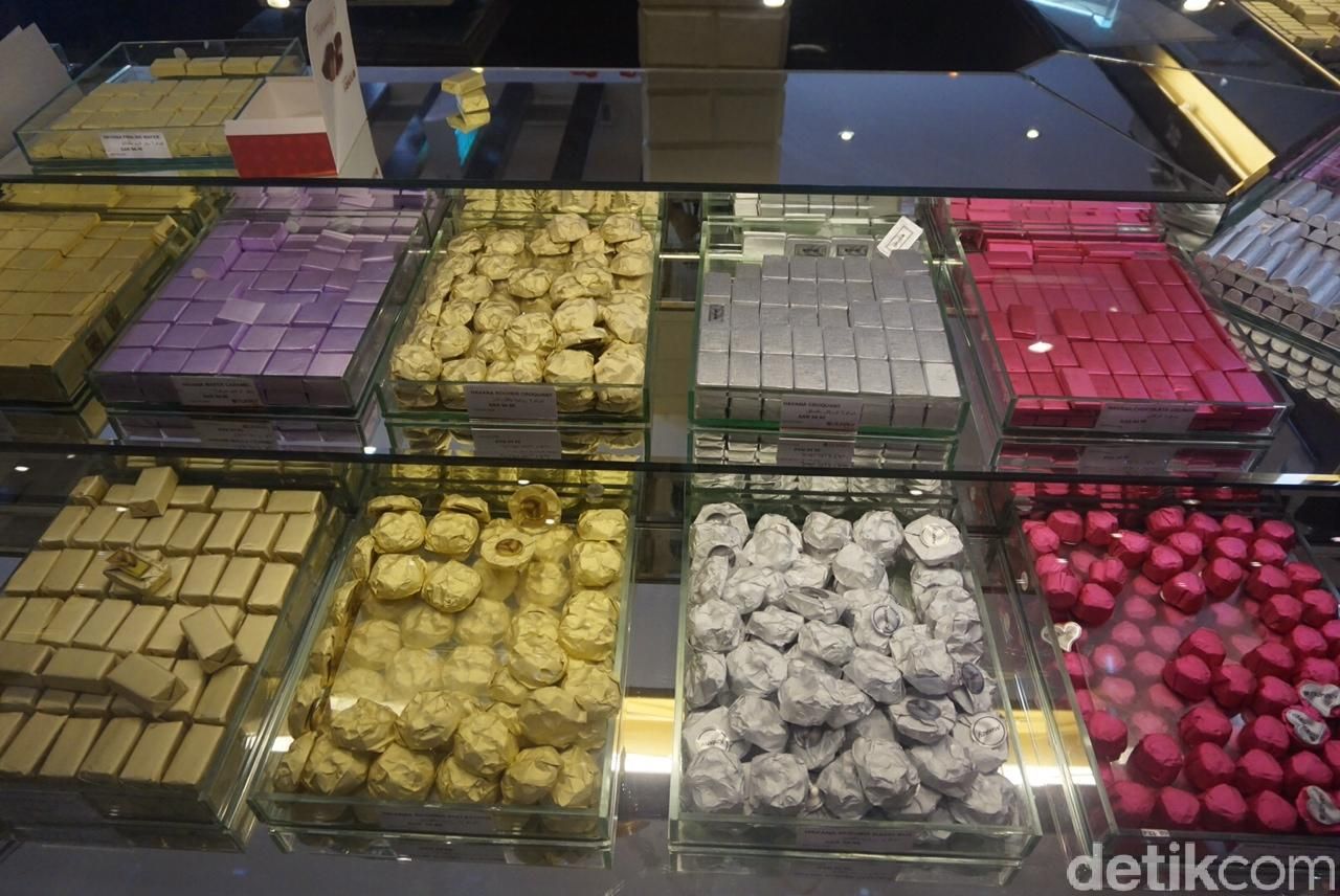 Bergerak ke dalam toko, langsung tercium semerbak aroma cokelat. Di tengah-tengah toko terdapat dua etalase memanjang tempat cokelat yang bisa dibeli secara kiloan dijual. Saat memasuki toko ini, pemandu tur, Rachmat Wildan Sani langsung mengarahkan rombongan umroh ke salah satu sudut gerai.