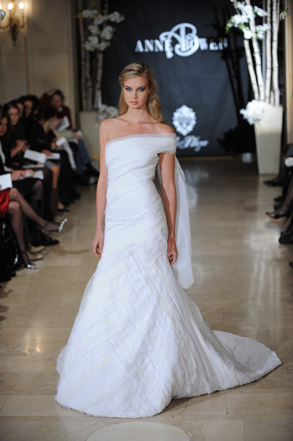 Gaun dengan potongan asimetris seperti one-shoulder juga menjadi model favorit tahun ini. Detil kuat di bagian pundak akan membuat si pengantin terlihat cantik juga sensual. Desainer Anne Bowen adalah salah satu yang menampilkan gaun model ini di koleksi terbarunya.