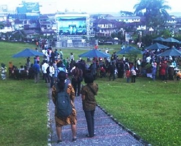 Warga Cipanas Tonton Akad Nikah Ibas Lewat Layar Besar