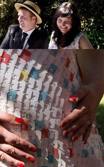 Biasanya gaun pernikahan dibuat dari material tulle, organza atau lace yang cantik. Namun pengantin dari Australia satu ini memakai sesuatu yang berbeda untuk gaun pengantinnya, yaitu gaun dari 10.000 label kemasan roti.