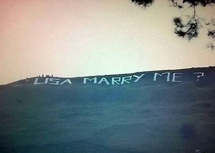 Adalah Chris Knapton, pria romantis yang melamar kekasihnya, Lisa Jenkins dengan pesan di atas perbukitan. Lisa pun tak dapat berkata apa-apa saat ia melihat tulisan namanya dengan kalimat pertanyaan untuk menikah dari ketinggian 2.000 kaki.