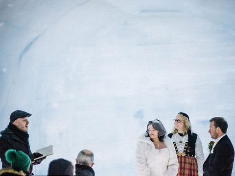 Pasangan asal Derby, Inggris itu hanya mengundang 19 tamu sebagai saksi cinta mereka. Keduanya pun mengikat janji di dalam sebuah gereja kecil yang dibuat di bawah es di Langjökull; sungai es terbesar ke dua di Eropa dengan temperatur -2 derajar celcius saat itu.