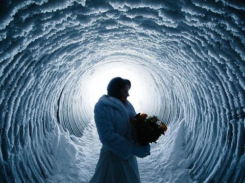 Suasana yang dingin seolah menghangat melihat dua pasangan bernama Anthony Lee dan Mari Jones-Lee. Pasangan asal Inggris ini tak memilih untuk mengikat janji setia mereka di gereja atau gedung resepsi mewah, melainkan membawa pernikahannya jauh ke Islandia dengan pemandangan sungai es membeku, 100 kaki di bawah tanah.