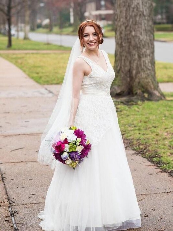 Seorang wanita bernama Julia Cain terlihat begitu bersinar di hari pernikahannya, tak lain karena gaun pengantin yang ia kenakan. Gaun tanpa lengan ini tak akan ditemukan di toko-toko gaun saat ini, karena umur gaun tersebut sudah 63 tahun.