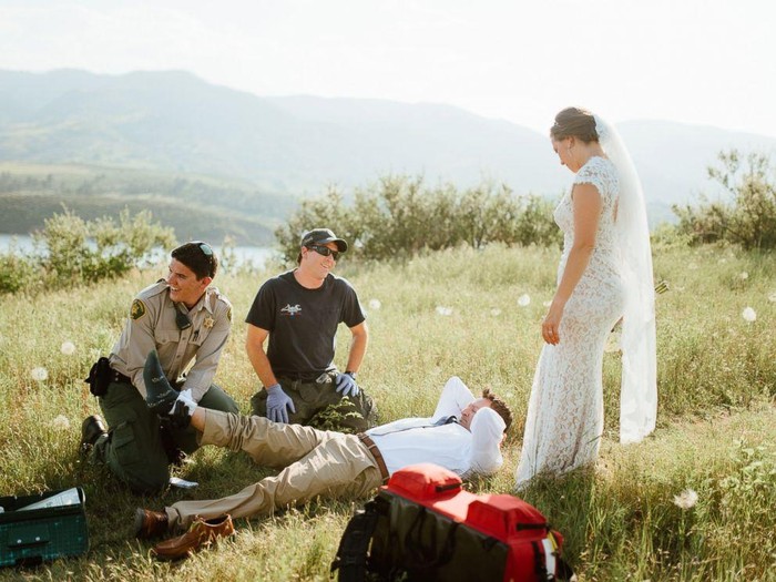Melakukan foto pre wedding di lokasi outdoor atau luar ruangan memang bisa menghasilkan gambar yang indah. Namun Anda harus berhati-hati saat melakukannya, apalagi jika pemotretan dilakoni di alam terbuka yang tak sering dijamah manusia. Seperti yang dialami calon pengantin ini. Saat foto pre wedding, sang calon mempelai pria malah digigit ular.