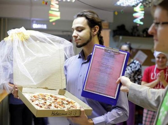 Pria itu kemudian memilih menikahi sekotak pizza berukuran besar. Pernikahan aneh ini terjadi di Tomsk, Rusia Selatan. Meski pemerintah dan gereja menolak untuk memberikan surat resmi pernikahan antara dirinya dan sekotak pizza namun ia tetap melangsungkan upacara menikah.
