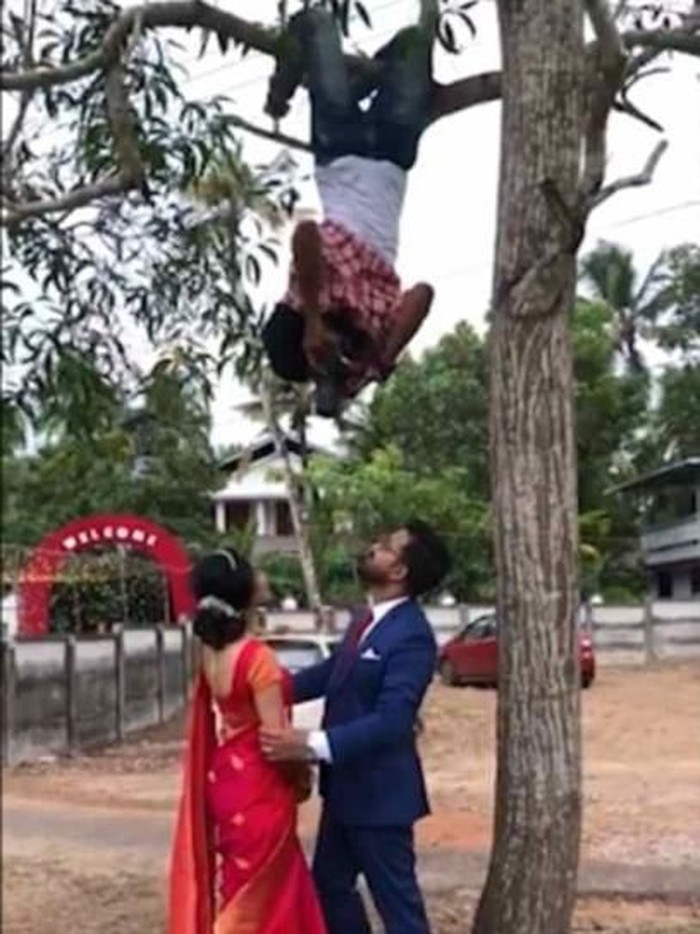 Aksi akrobat Vishnu ini pun direkam oleh orang yang berada di dekat lokasi kejadian yaitu di kawasan Thrissur, India bagian Selatan pada 15 April. Sang perekam mengambil gambar dengan fokus pada tingkah laku fotografer tersebut.