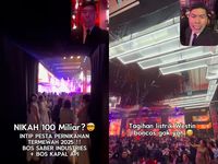 Pesta pernikahan tersebut diketahui merupakan momen bahagia bagi pasangan Rohan dan Partyy yang digelar pada Jumat, (19/12/2025). Area dalam tenda didesain sedemikian rupa dengan konsep lesehan yang hangat, di mana para tamu duduk rapi menghadapi meja-meja penuh suguhan di atas karpet hijau.