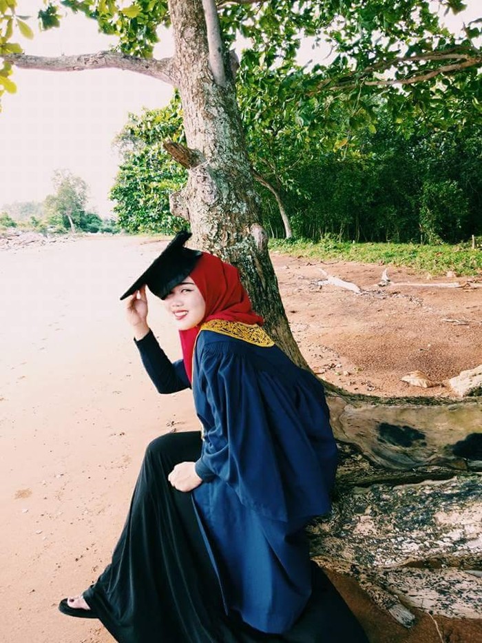 Sosok wanita berhijab ini menjadi viral. Penyebabnya karena dia berfoto memakai baju wisuda lengkap dengan toga di kuburan. Ini kisah haru di balik foto tersebut.