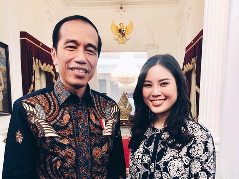Putri Ketum Perindo Hary Tanoesoedibjo, Angela Tanoesoedibjo, merapat ke Istana Kepresidenan, Jumat (25/10/2019) pagi ini. Berkemeja putih, Angela terlihat segar dengan riasan tipis bernuansa peach serta rambut digerai alami.